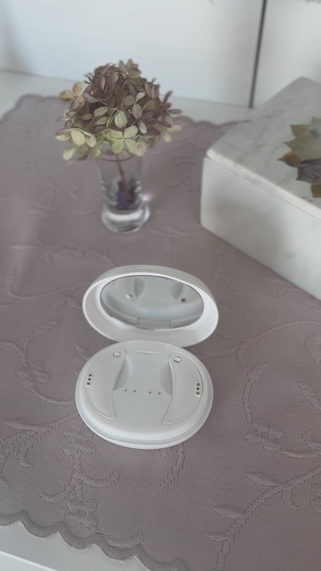 This innovative tool combines therapeutic red light with soothing warmth, and it is your option to add the massaging (EMS) gentle micro-current pulses for a complete anti-aging treatment.